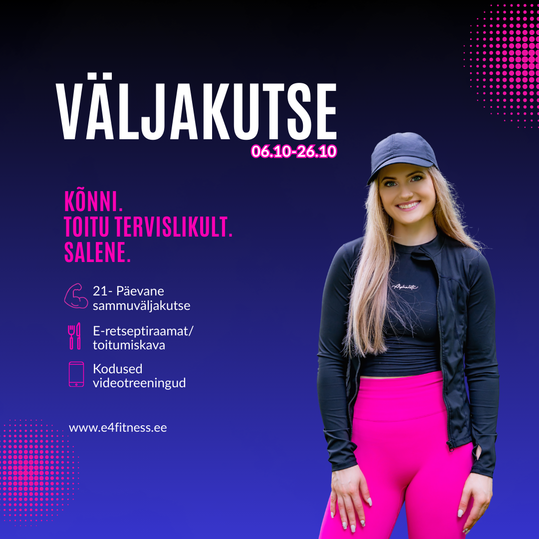 ℹ️ NB! Kogu väljakutse toimub privaatses Facebooki grupis. Liitumislingi saad e-mailile koos arvega kohe peale ostu. Kui ei ole saanud e-maili, siis esmalt vaata rämpsposti kausta. Küsimuste korral: info@e4fitness.ee