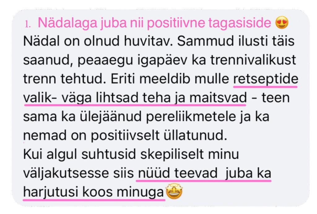 Koht: Privaatses Facebooki grupis – kõik kavad, retseptid ja tugi mugavalt ühes kohas.